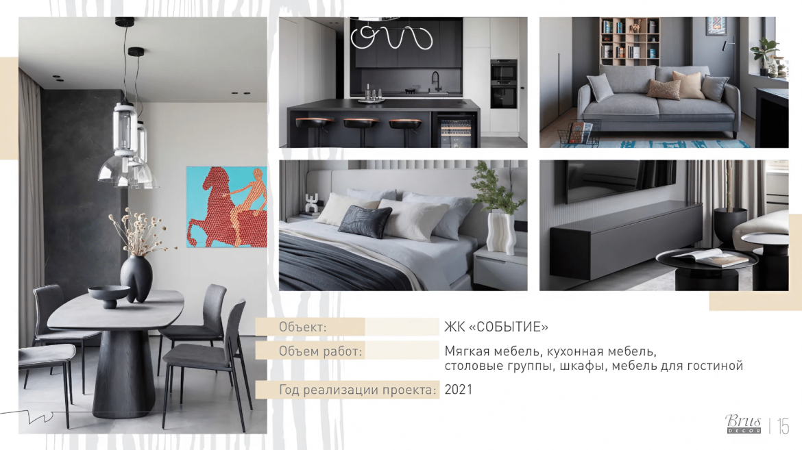 Этот интересный проект мы реализовывали для клиента из ЖК "СОБЫТИЕ" в 2022 году. Нам предстояло выполнить нестандартную задачу: создать мебель для кухни на заказ по индивидуальному заказу для обеденной зоны и кухонного пространства. Кроме того, требовалась гостиная на заказ, изготовление корпусной мебели для обустройства спальной комнаты. Гостиная идеально вписалась в пространство и соответствовала всем пожеланиям.